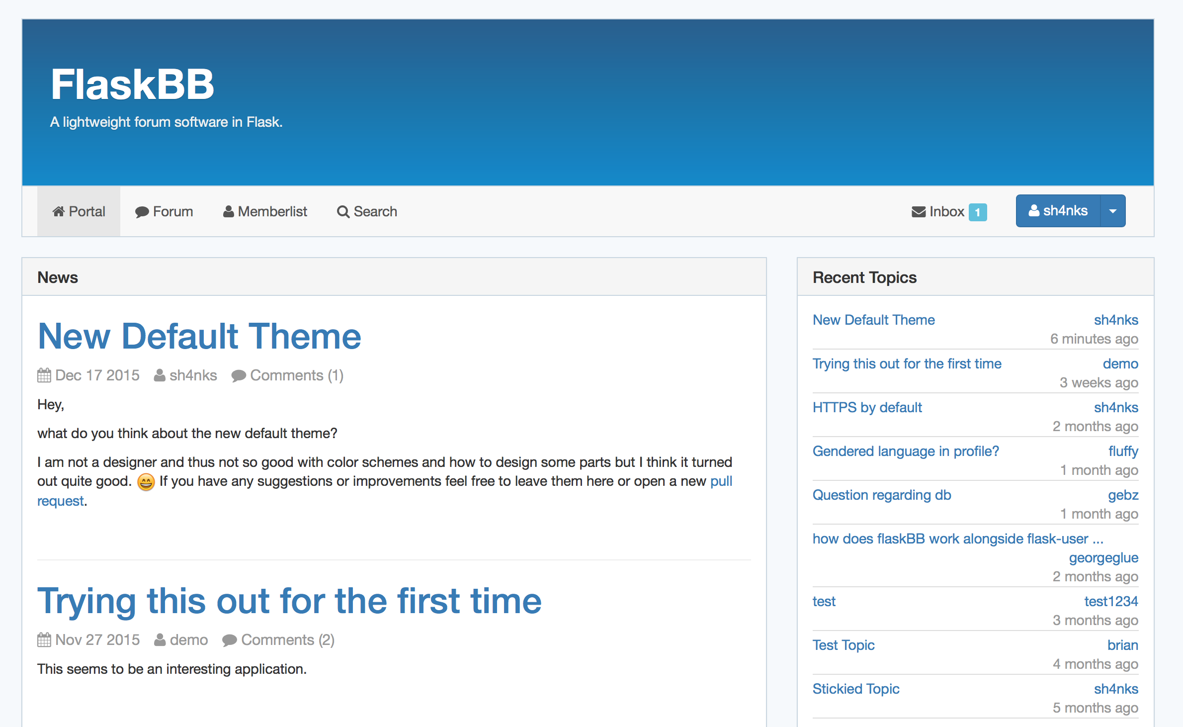 FlaskBB is open source and the whole source code is available on GitHub. It is being developed under the BSD 3-Clause license.